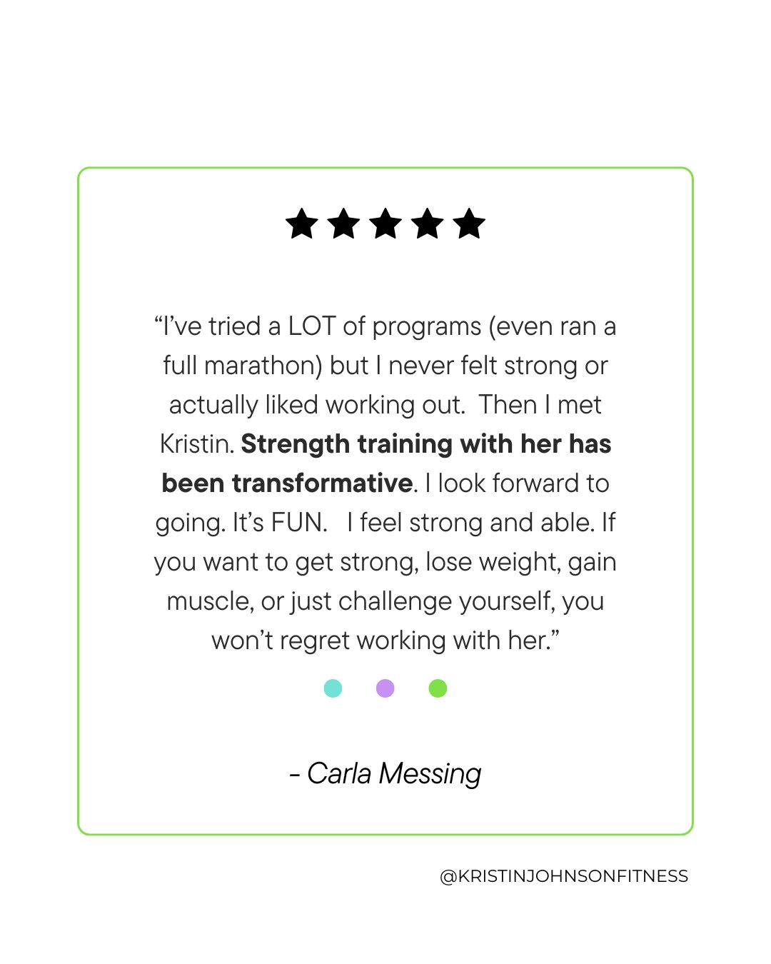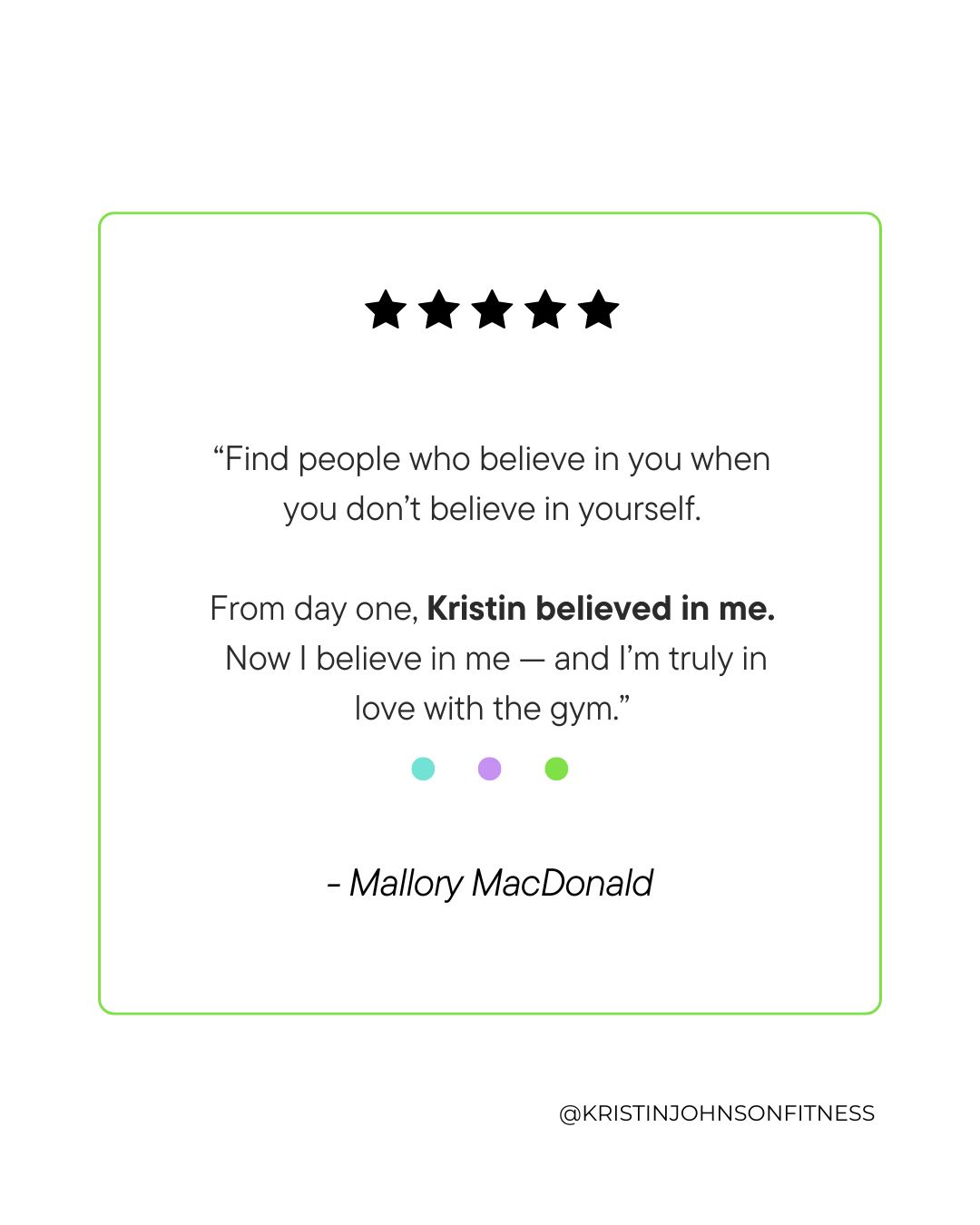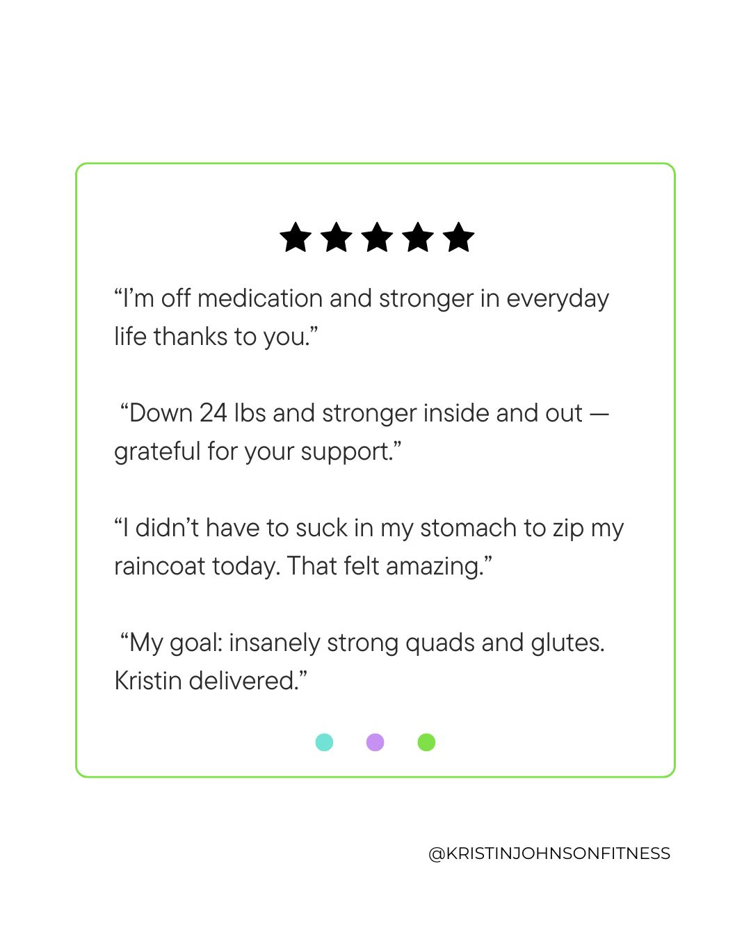 Kristin Johnson helps busy people get strong in less time with efficient, high-effort, 30-minute training. She also leads Grit & Glitter — her signature women’s coaching program focused on fat loss, strength, and freedom.